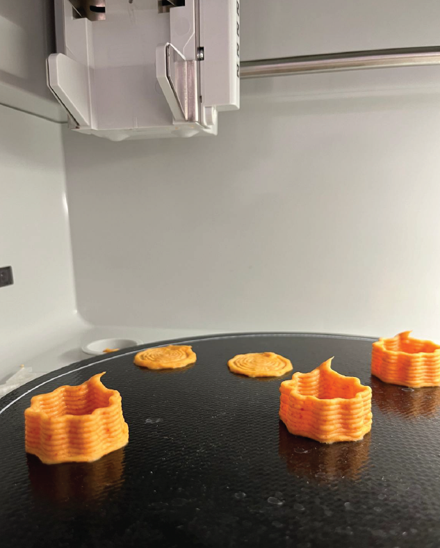 1) lo sviluppo e sperimentazione di inchiostri organici ottenuti da sottoprodotti alimentari, ottimizzati per la stampa 3D, come la formulazione Z2FN, che ha raggiunto proprietà reologiche vicine agli standard commerciali;